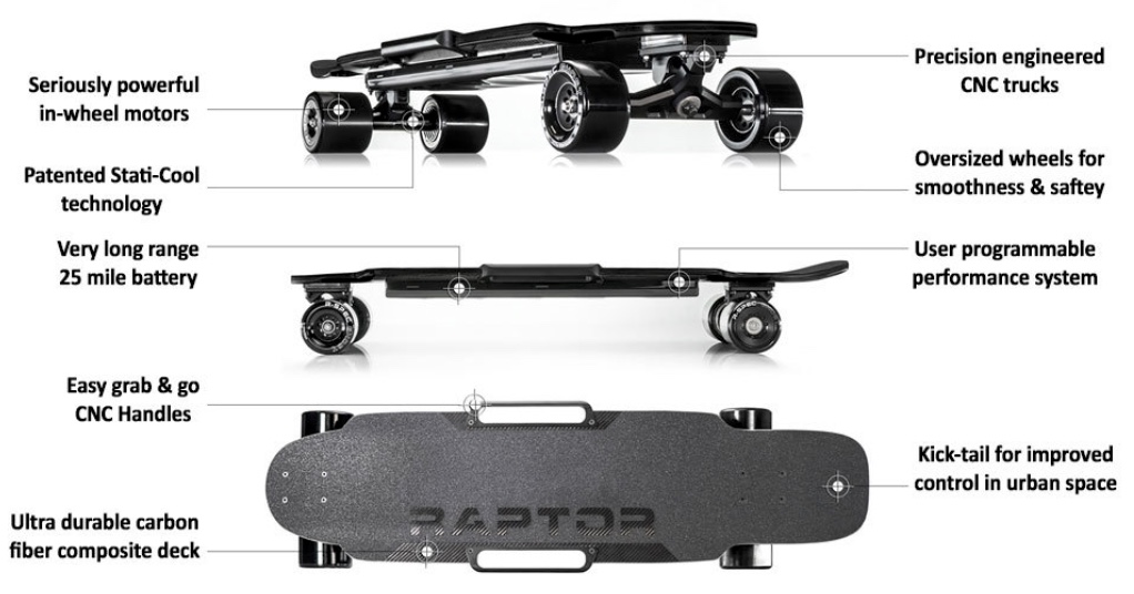 Most buyers look at the board’s top range and top speed, but these should NOT be the only determinants. When evaluating performance, we also take into account the board’s motor type (belt, hub), number of motors (1, 2 or 4), motor’s power (W), battery capacity (Wh), maximum slope capability (% incline), and weight. Although these are stated numbers, we also sample user reviews to determine if the claimed numbers are realistic.